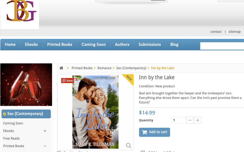 Champagne Book Group has published the paperback edition of INN BY THE LAKE. Published March 14, it is now available directly from the publisher, as well as the usual online booksellers.
