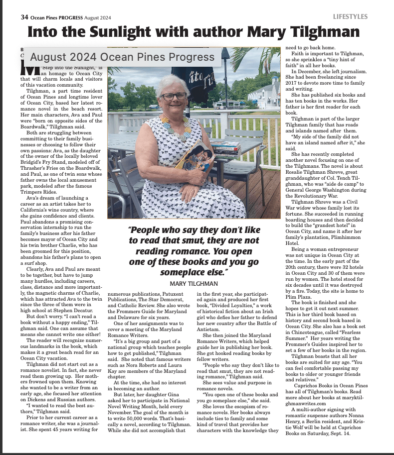 I was thrilled when a reporter from the Ocean City-area newsweekly Ocean Pines Progress asked me to sit down for an interview. After 45 years as the one with the notebook, it was strange answering the questions. But fun, too.